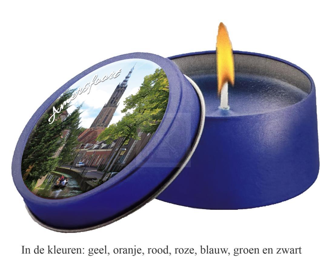 Blikje met kaars doming zwart Amersfoort