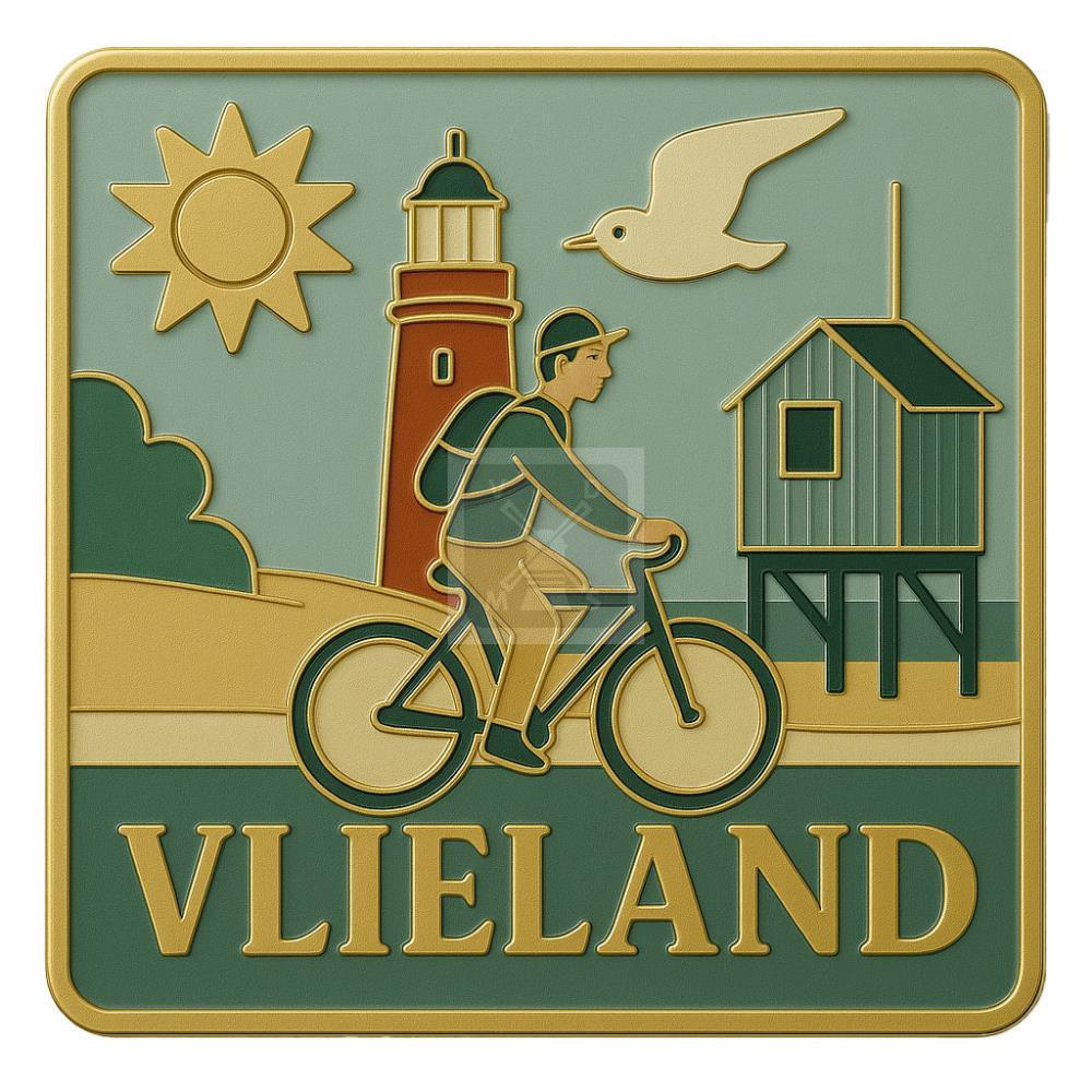 Magneet 3D gold vierkant 7,5×7,5cm Vlieland