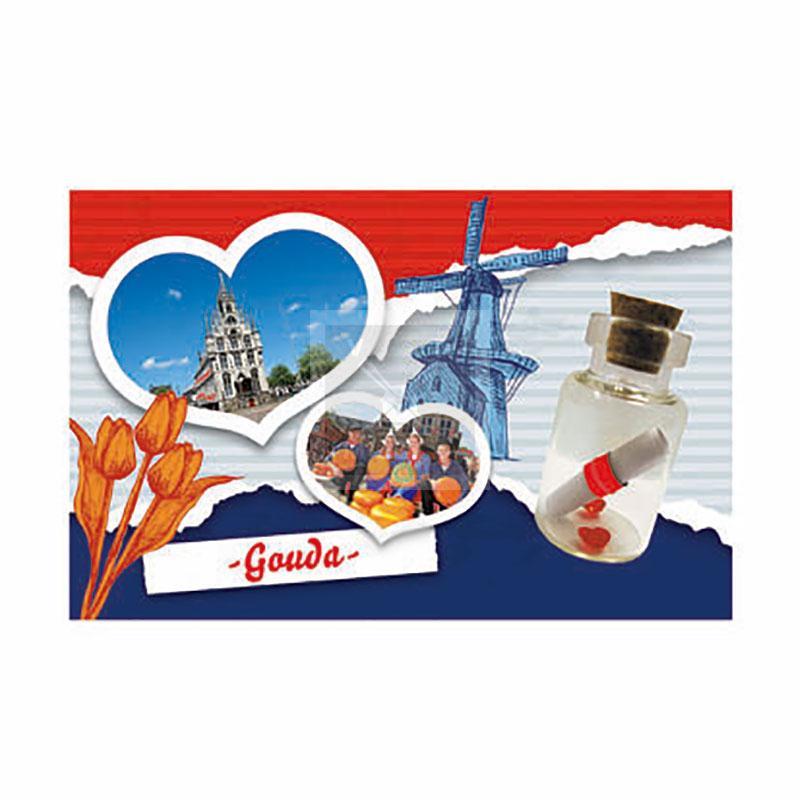 Magneet flesje brief en hartjes Gouda