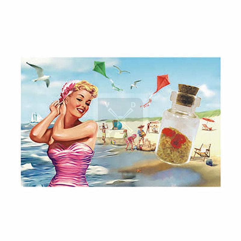 Magneet flesje zand en hartjes Zee