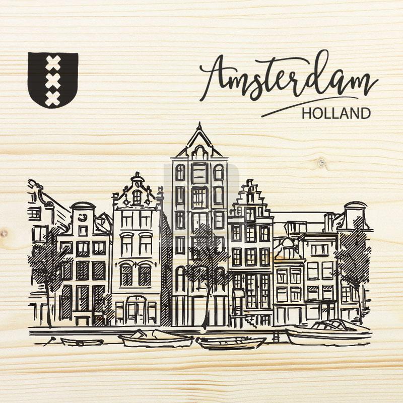 Magneet hout Amsterdam geveltjes