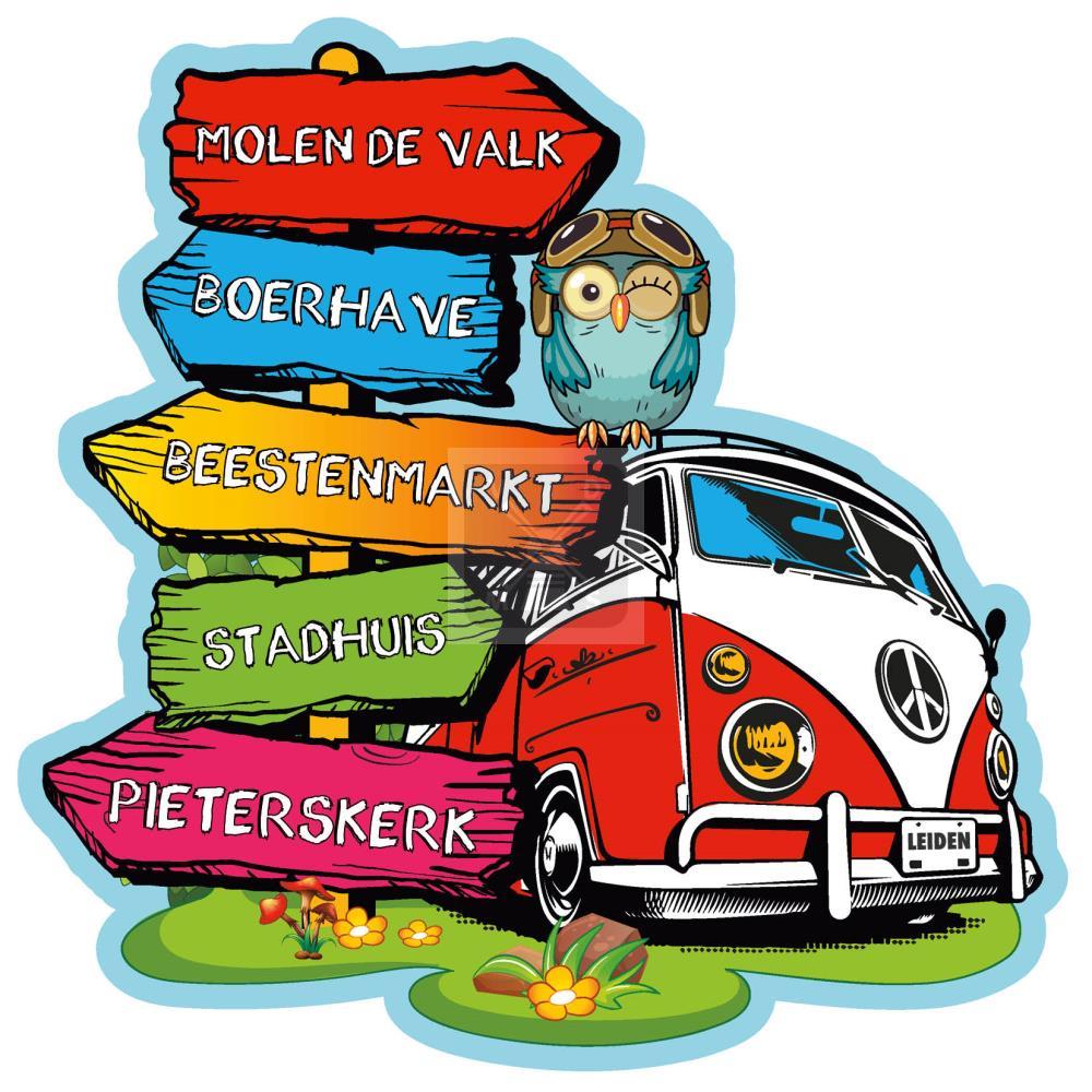Magneet hout VW busje Leiden
