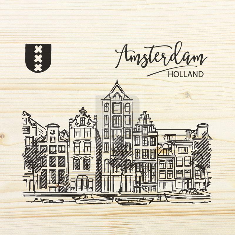 Onderzetter enkel hout Amsterdam geveltjes