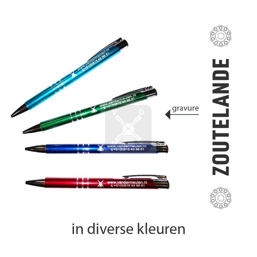 Pen met zilveren gravure Zoutelande blauw