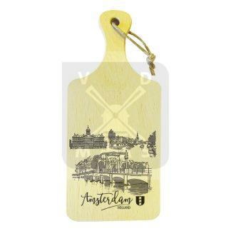 Snijplank hout 14x32cm Amsterdam brug/geveltjes