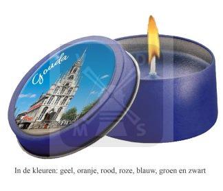 Blikje met kaars doming zwart Gouda