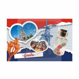Magneet flesje brief en hartjes Gouda